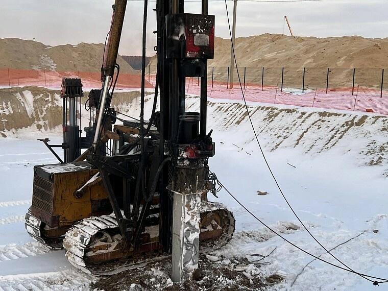 Застройщик предварительно провел испытания свай. Выполнена разработка котлована на проектную отметку, с которой производится погружение основного количества свай – это почти 400 штук.