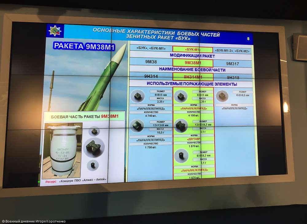 На основе проведённого анализа «Алмаз-Антей» утверждает, что, если малазийский Boeing-777, летевший рейсом МН17 17.07.2014 г. над Донецкой областью, был сбит зенитно-ракетным комплексом, то это могла быть только ракета 9М38 (М1) комплекса «Бук-М1» из района южнее населённого пункта Зарощенское.